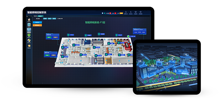 ·智能照明:可通过开关/调光按钮图形进行开关调光控制,实时显示灯光的开、关、调光/故障状态